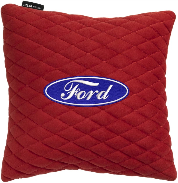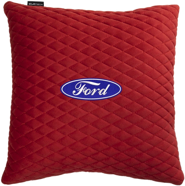 Подушка в авто EVAtech з алькантари 30 x 30 см Ford червона з червоною ниткою малий ромб (SPSALMRRRV010)
