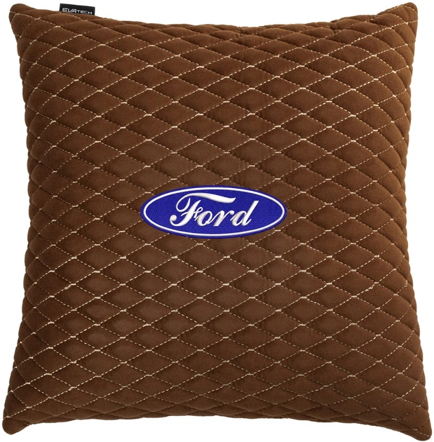 Подушка в авто EVAtech з алькантари 40 x 40 см Ford коричнева з коричневою ниткою малий ромб (SPBALMRZZV010)