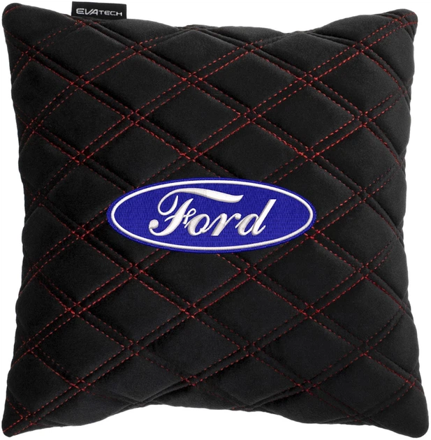 Подушка в авто EVAtech з алькантари 30 x 30 см Ford чорна з червоною ниткою великий подвійний ромб (SPSALHRBRV010)