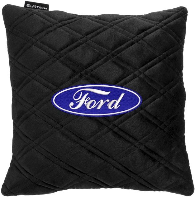 Подушка в авто EVAtech з алькантари 30 x 30 см Ford чорна з чорною ниткою малий ромб (SPSALMRBBV010)