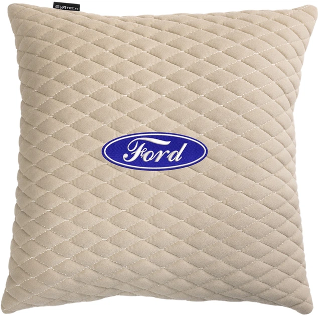 Подушка в авто EVAtech з алькантари 40 x 40 см Ford бежева з бежевою ниткою малий ромб (SPBALMRIIV010)