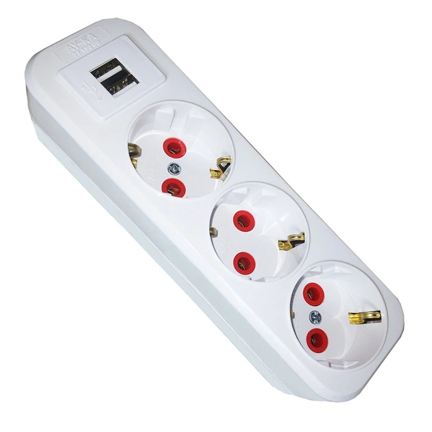 Колодка біла 3 входи з заземленням 16А з USB (5V 2.1A) AY-KA