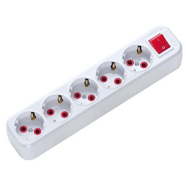 Колодка біла 5 входів з заземленням та вимикачем 16А AY-KA