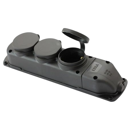 Колодка із заземленням ERKA 6003 3 розетки каучук із заглушками Чорний