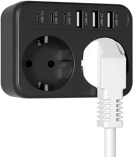 Мережевий адаптер Andowl Q-PX220X1 3500w, 8в1, 2 розетки, 3 USB, 3 USB-C (Q-PX220)