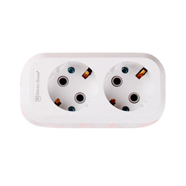 Колодка на дві розетки Electro House із заземленням із ABS-пластику біла IP22