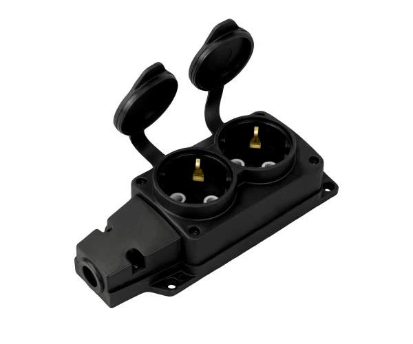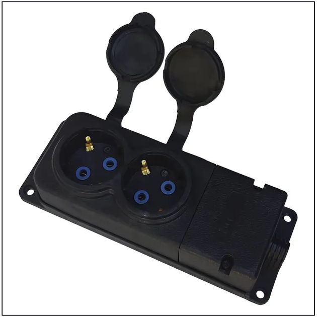 Колодка каучукова чорна з кришкою та заземленням 2 гнізда