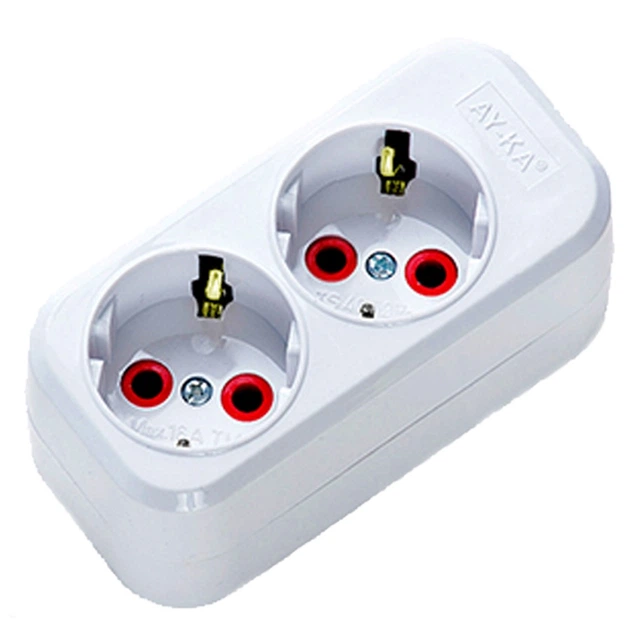 Колодка біла 2 входи з заземленням 16А AY-KA