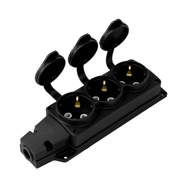 Колодка 3 гнізда чорна з кришкою каучукова вологозахищена з зазем. 220-000-301