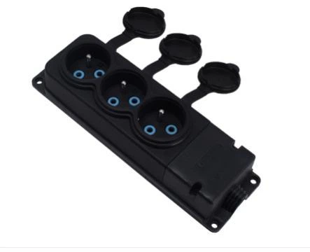 Колодка Horoz Electric 3 розетки 16А 250В каучук, чорна з кришкою та заземленням