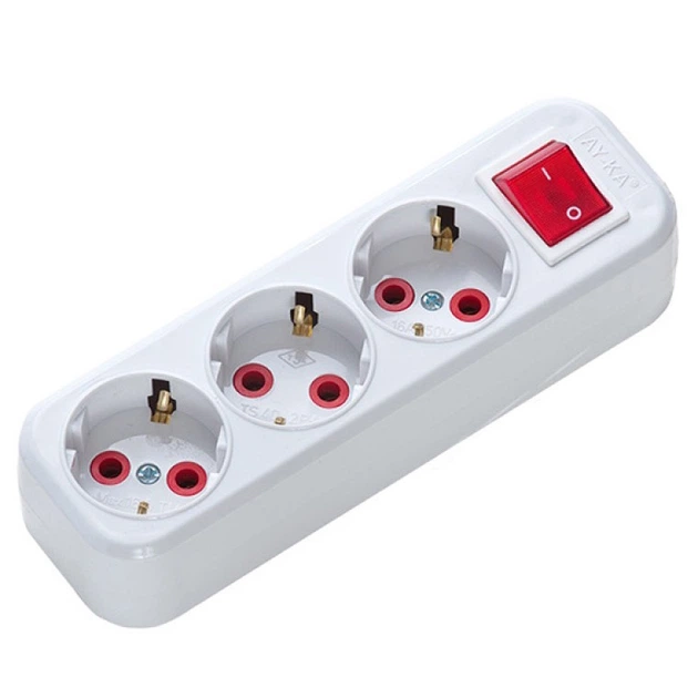 Колодка біла 3 входи з заземленням та вимикачем 16А AY-KA