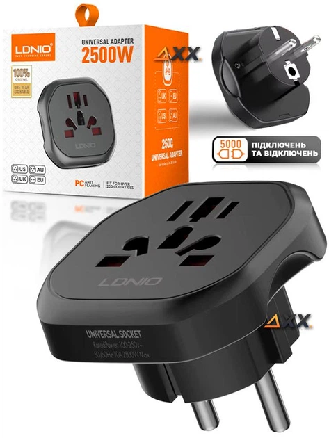 Перехідник універсальний NK-823 220В 13А, 2хUSB (t7790)