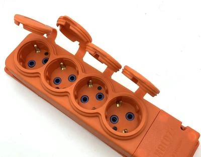 Колодка Horoz Electric 4 розетки 16А 250В каучук, помаранчева з кришкою та заземленням
