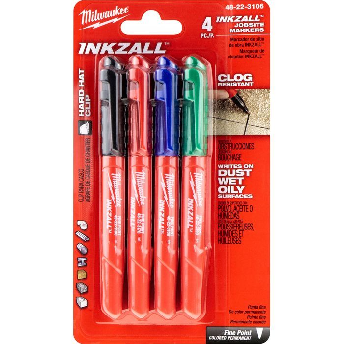 Набір маркерів Milwaukee INKZALL ультра-тонких, синій, червоний, зелений, чорний, 4шт (48223106) 48223106