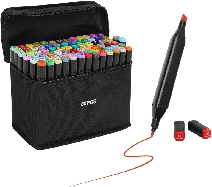 Комплект набір двосторонніх маркерів на спиртовій основі в сумці чохлі для скетчингу малювання 80 штук (481864-Prob)