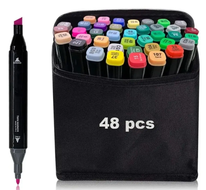 Маркери для скетчингу набір скетч маркери фломастери за номерами для скетчбука в сумці-чохлі 48 кольорів спиртові двосторонн