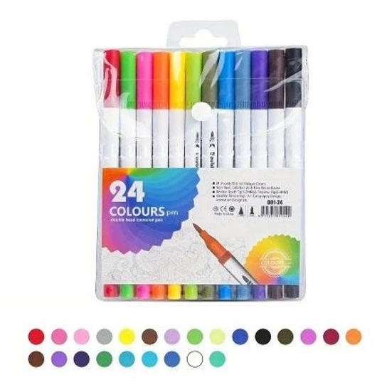 Професійний Набір 24 шт Двосторонніх Маркерів Лінер+пензель З М'якою Головкою На Водній Основі (361698)