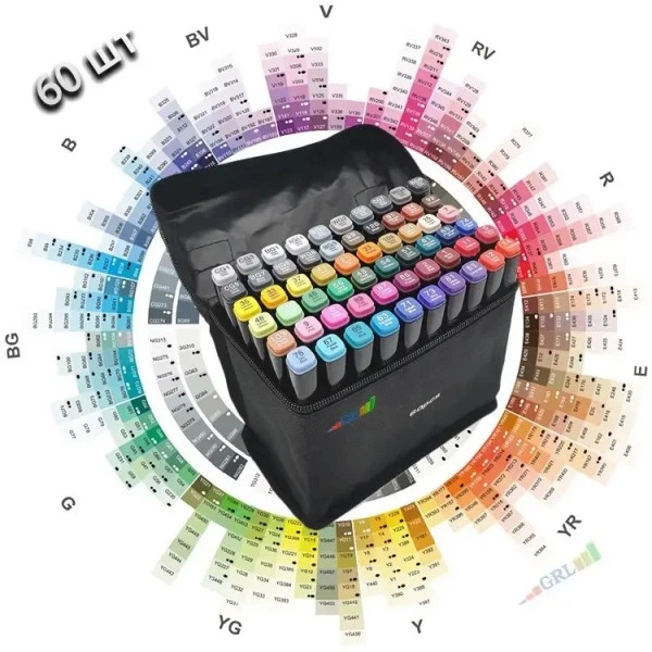Набір скетч маркерів 60шт Маркери двосторонні для скитчига та малювання на водній основі