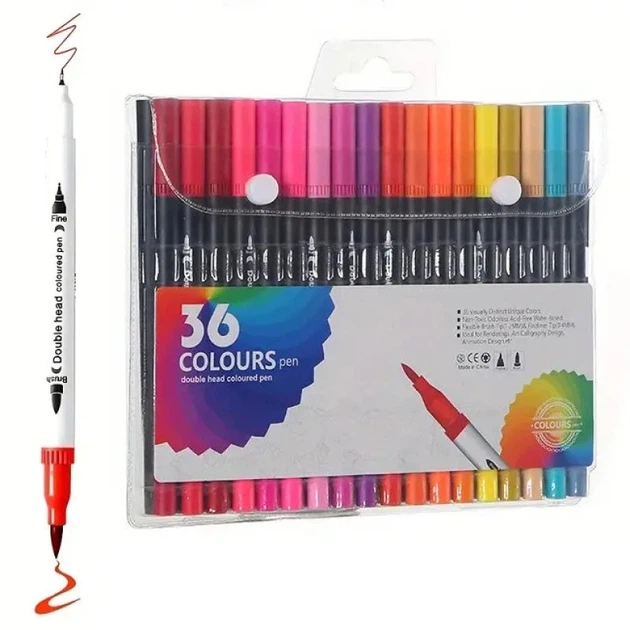 Професійний Набір 36 Шт Двосторонніх Маркерів Лінер+пензель З М'якою Головкою На Водній Основі (361699)