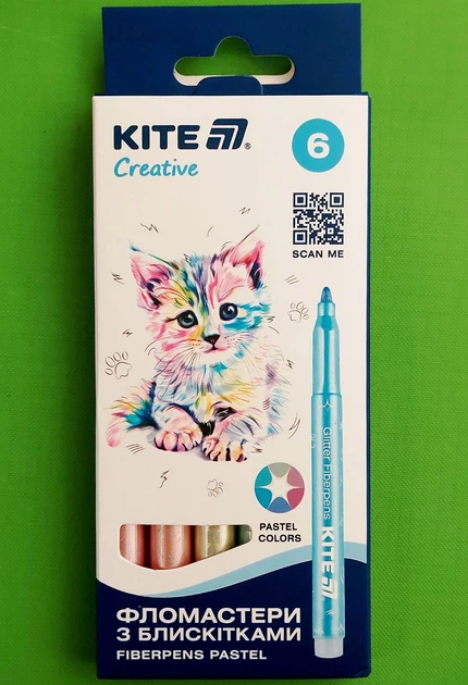 Фломастери з блискітками. Creative пастель (K-1148), 6 кольорів. Kite