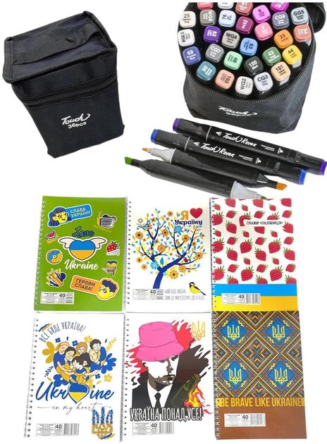 Набір двосторонніх скетч маркерів Touch 36 шт. в чохлі + блокнот А5 (40 арк) в асортименті