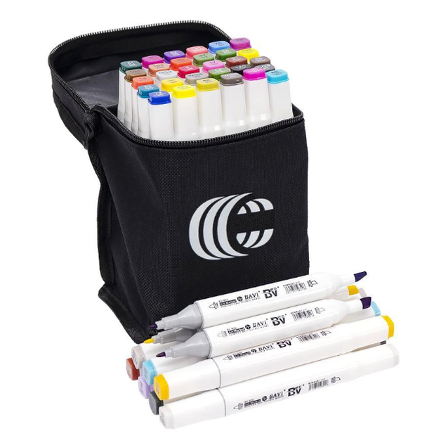 Набір двосторонніх маркерів для скетчингу малювання на спиртовій основі 30 кольорів Скетч-маркери в чохлі