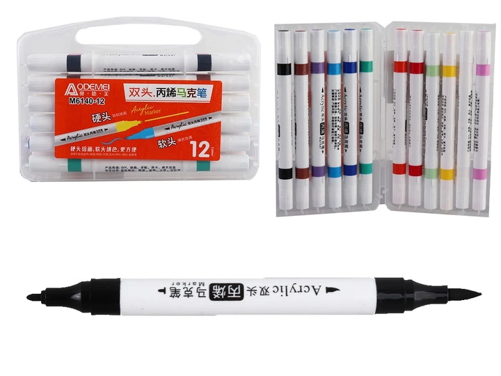 Набір акрилових скетчмаркерів двосторонніх Aodemei, м’який+твердий, 12 шт., пластиковий бокс