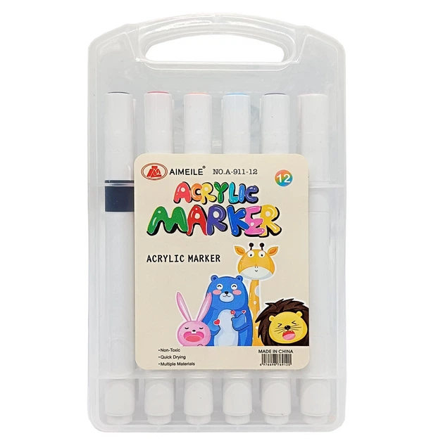 Набір акрилових маркерів A-911-12 у пластиковому боксі 12 кольорів