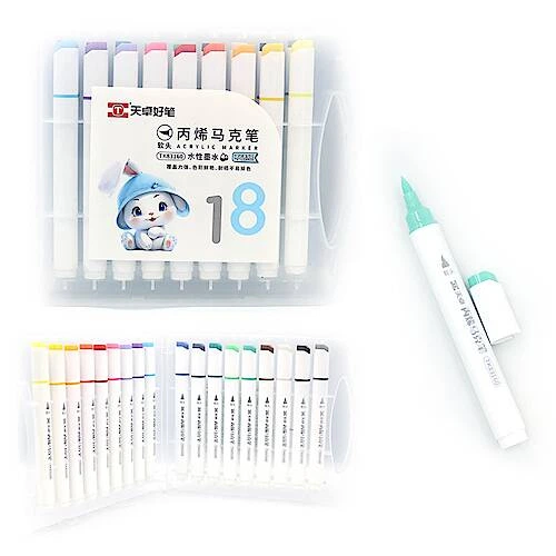 Набір акрилових маркерів 18 шт для малювання в білому відрі