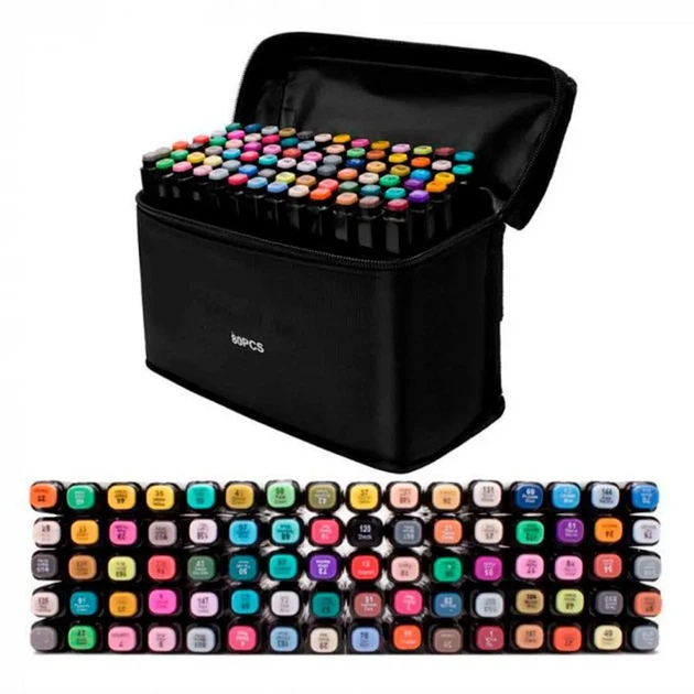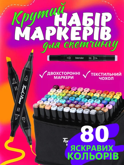 Набір скетч-маркерів 80 шт для малювання двосторонні яскраві кольори