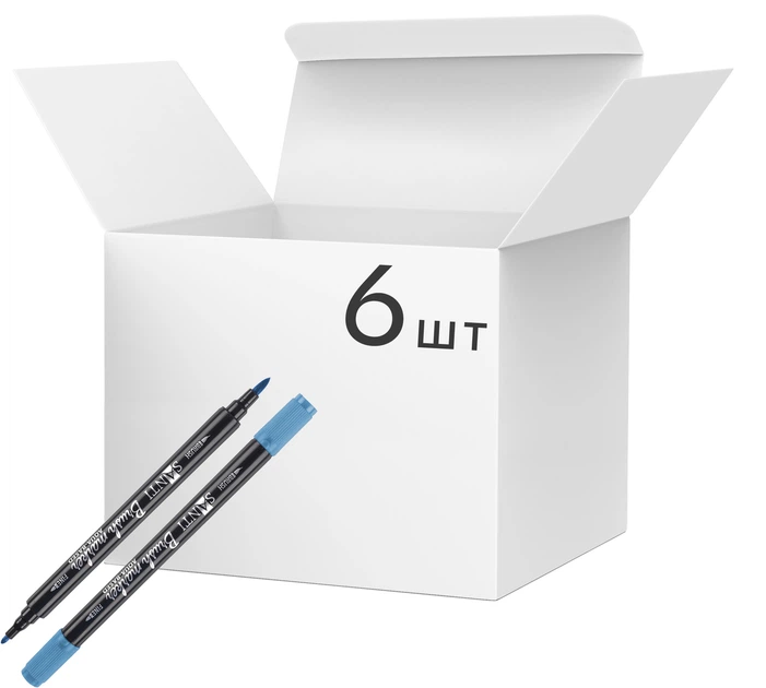 Набір двосторонніх маркерів акварельних Santi Brush Marker SWB-18 6 шт Берлінська блакить (391074)