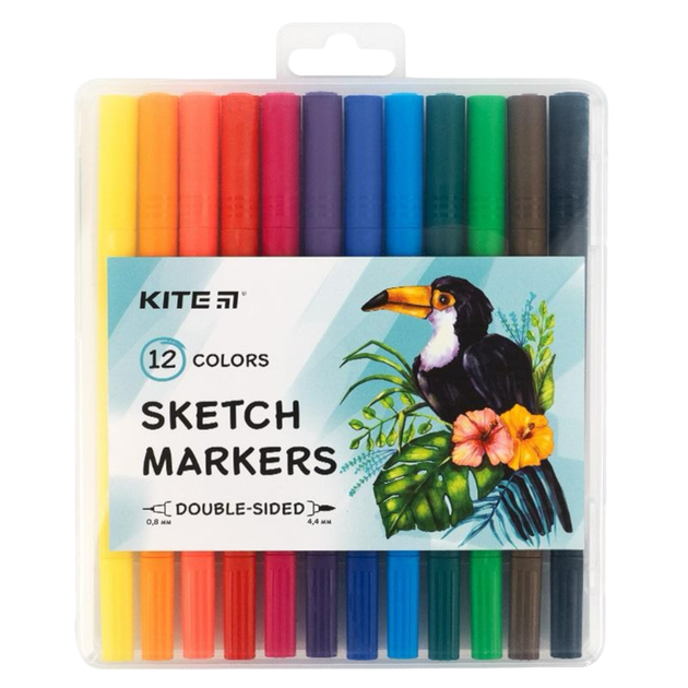 Набір скетч маркерів KITE, 12 штук, двосторонні, у пластиковому контейнері