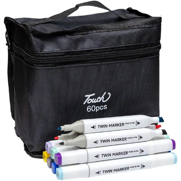 Набір маркерів для скетчингу (60 шт.) Двосторонні маркери на спиртовій основі. сумка