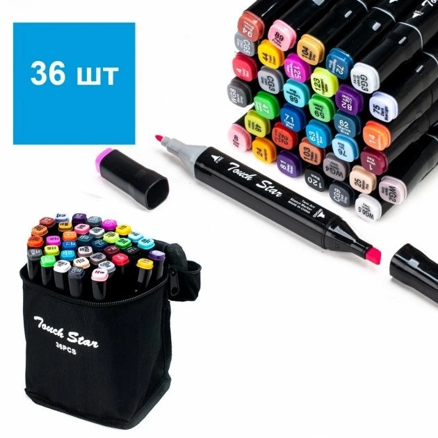 Набір скетч маркерів TOUCH двосторонні у чорній сумці 36 шт