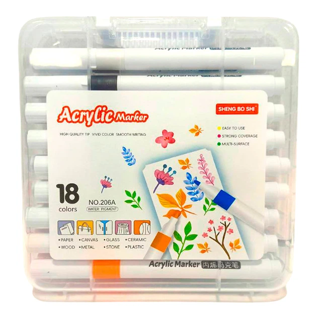 Набір акрилових маркерів Sheng Bo Shi 18шт, 3мм №206А-18