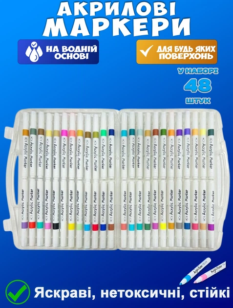Маркери акрилові набір 48 кольорів Brush Acrylic Marker для малювання на будь-яких поверхнях