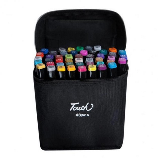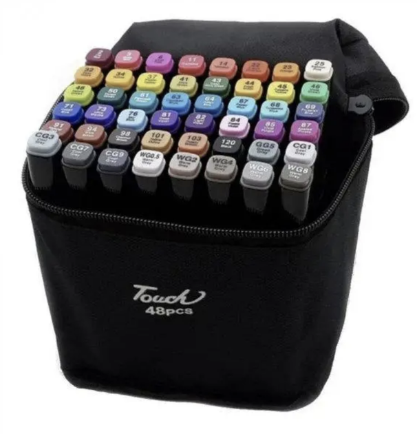 Набір двосторонніх маркерів для малювання Touch 48шт для скетчингу на спиртовій основі з чохлом сумкою