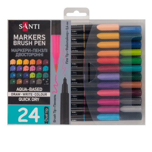 Набір маркерів двосторонніх акварельних Santi Brush Pen 391000 24 кольори 4917586