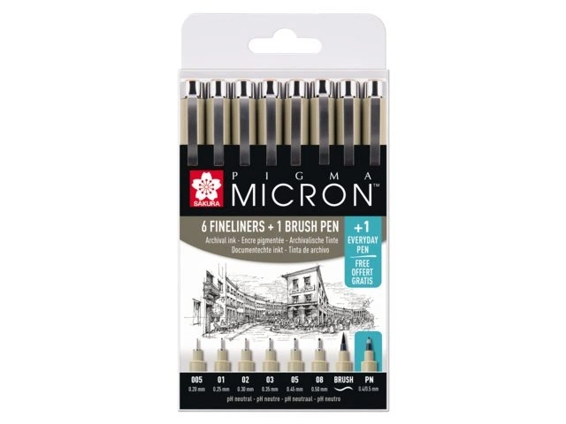 Набір лайнерів Sakura Pigma Micron 6шт + Pigma Brush + Pigma Micron PN (POXSDK8S)