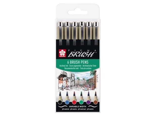 Набір лінери-кисть 6кол. Pigma Brush Basic Sakura