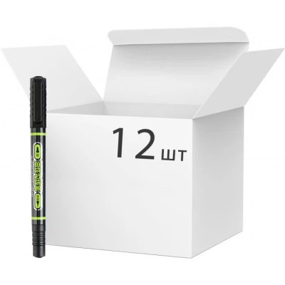 Маркер водостійкий, 1 мм, чорний, 12 шт. в упаковці
