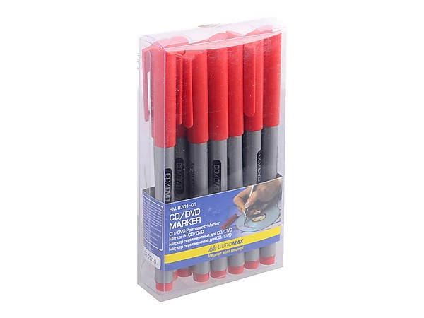 Маркер водостійкий тонкопишущий JOBMAX, червоний, 0.6 мм (12 штук в упаковці) Buromax (BM.8701-05)