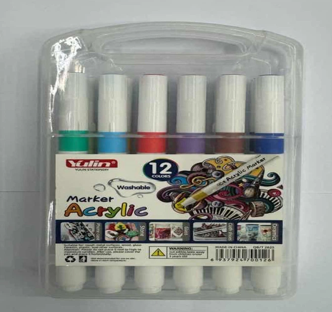 Набір акрилових маркерів 12 штук в кейсі Y 04 яскраві кольори водостійкі