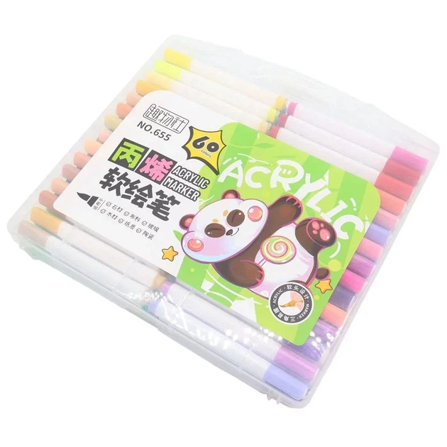 Професійні акрилові маркери 60 кольорів у кейсі для зберігання, яскраві кольори, фломастери для малювання на папері, футболк