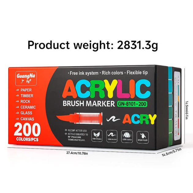 Акрилові маркери GuangNa Brush GN-8101 з м’яким пензликом 200 шт.