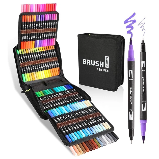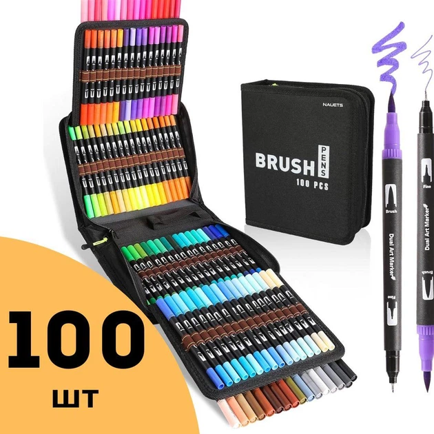 Набір двосторонніх маркерів для скетчингу Dual Brush Pens на водній основі 100 шт у сумці (306058)