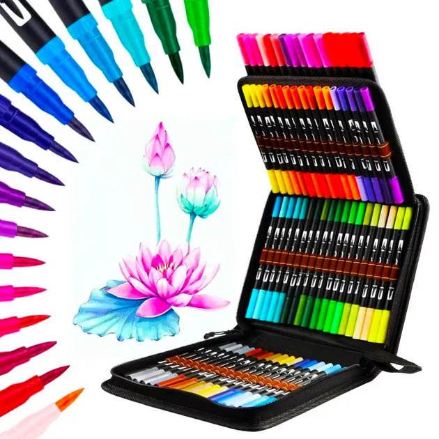 Акварельні маркери Brush Pen 80 кольорів у кейсі — двосторонні, для малювання, каліграфії, скетчингу та розфарбовування