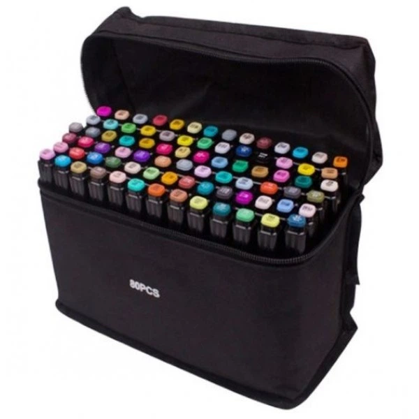 Набір скетч-маркерів 80шт для малювання двосторонніх у чохлі 1-7 мм