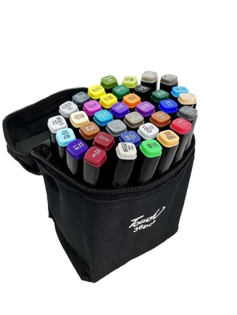 Набір двосторонніх скетч маркерів 36 штук Touch Cool, на спиртовій основі, чорний корпус у сумці