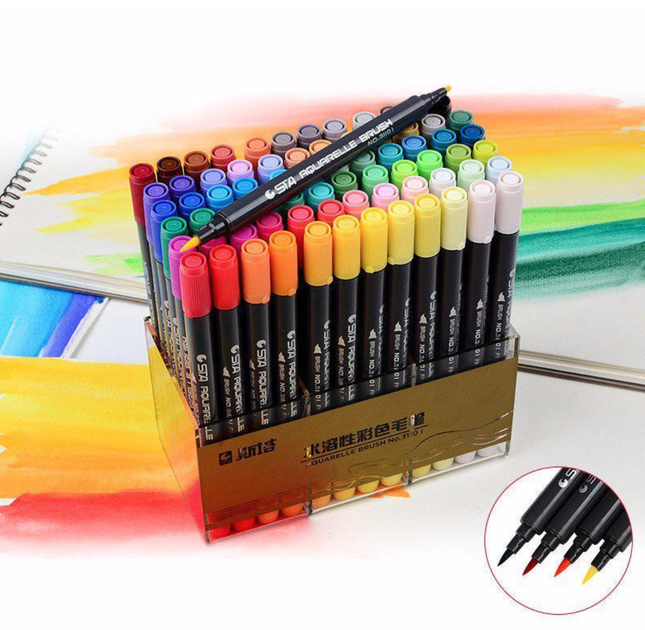 Набір 36 кольорів двосторонніх акварельних маркерів STA на водній основі Аквамаркери для малювання та скетчингу